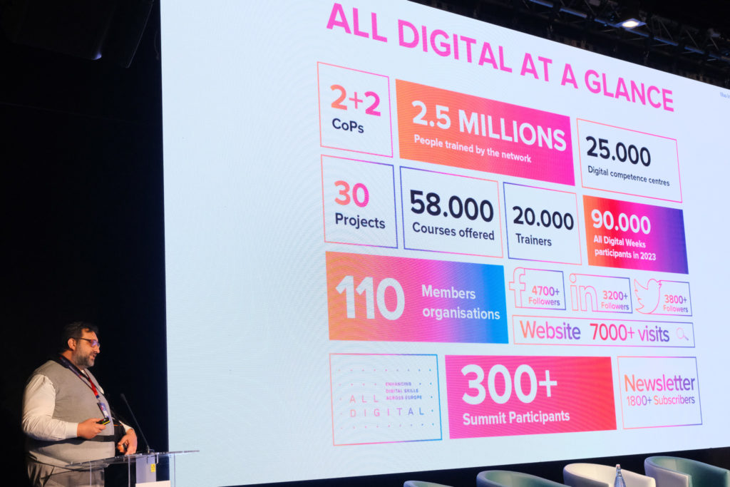 Earlier this morning Altheo Valentini, President of ALL DIGITAL, opened the event by highlighting the role of ALL DIGITAL in shaping European policy and enhancing digital skills. He emphasised that, when talking about digital rights, ‘’everyone in Europe should be included, regardless of their citizenship status’’.