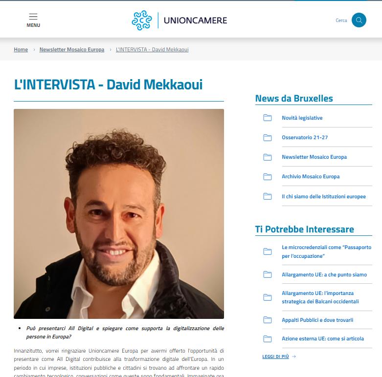 Interview with David Mekkaoui, All Digital CEO For MosaicoEuropa, biweekly newsletter of Unioncamere Europa We invite you to read an exclusive interview...